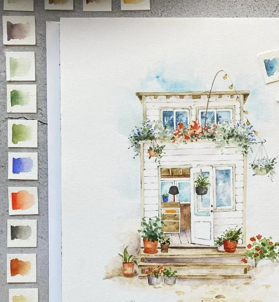 Inspired artist, watercolour magician, and business woman alike, Judith is one half of the artistic duo "Farbmotten". Her work centers around urban watercolour, but also uses gouache, and coloured pencils. Her naturalistic, playful, and gentle art features a love of detail that adds a subtle layer of sophistication and humour.